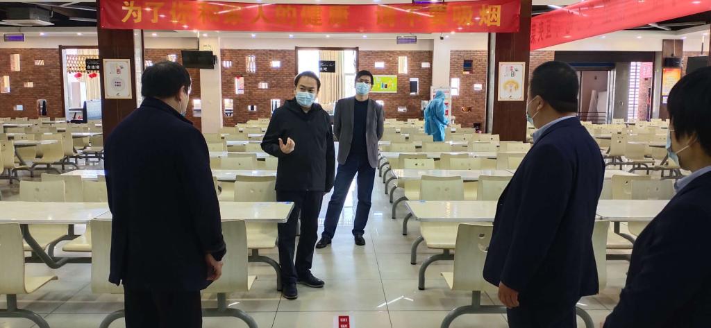 演练开始前,兰绍彤听取了食堂负责人就有关开学后师生用餐保障工作的汇报,对食堂物资储备、消毒情况进行了现场查看。